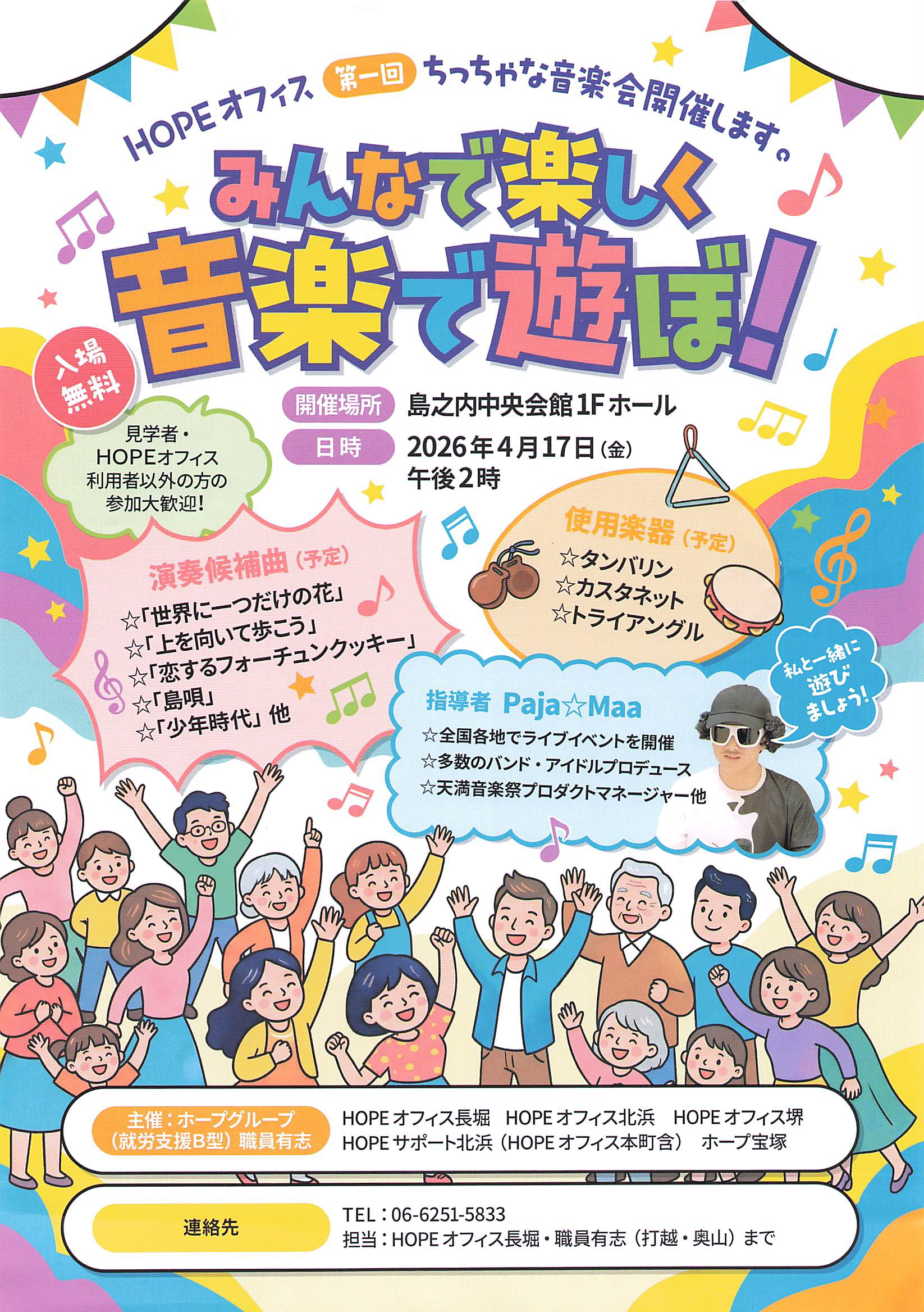 HOPEオフィス 第1回 ちっちゃな音楽会開催します。